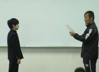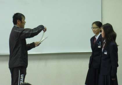 2月10日(水)朝の1年の学年集会で百人一首大会でのを表彰しました。班別は1位は1組、2位は1組二班と2組一班でした。クイーンは1組の女子2人。キングは2組でした。クラス優勝は1組でした。2回戦して合計1000枚を超える獲得札でした。