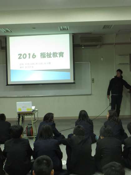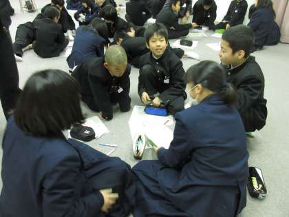 1年生の福祉体験の事前指導を2月10日(水)6限に多目的室で行いました。班別「車いすの人がどんな不自由があるか。どんな工夫をしたらいいか。」「目の不自由な人がどんな不自由があるか。どんな助けが必要か。」などを話し合いました。班別に発表した最後に「車いすの人に足になる。」「目が不自由な人の目になる。」というすごい言葉も発表されました。はたして、12日(金)午後本番、体育館とピロティ1階を使っての車いす体験、アイマスク体験ではどんな実感を得るでしょうか?