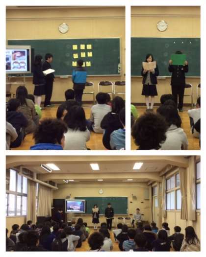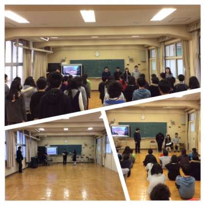 2月15日(月)、本校の生徒会役員が校区の小学校へ出向いて築港中学校の紹介をしてきました。