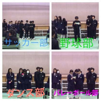 続いて各クラブの後輩から、先輩への感謝のメッセージです。それぞれのクラブで先輩一人一人に向けて、お礼を言いました。中には寸劇をしたり、パソコンを使って映像で感謝を述べるクラブもありました。いろいろと準備お疲れ様でした。