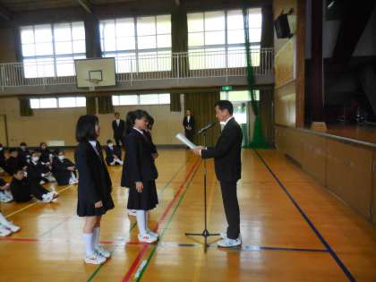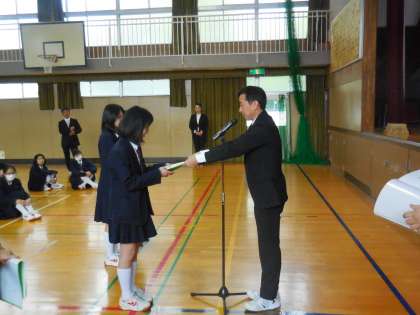 そして、1,2年生各クラス出席番号1番の代表生徒に校長先生から修了証書を授与しました。