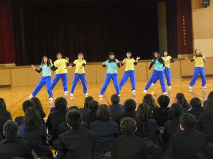 7番手はダンス部です、この日のために練習してきたダンスを披露しました。8人の連携がとれたダンスに、新入生も見入っていました。