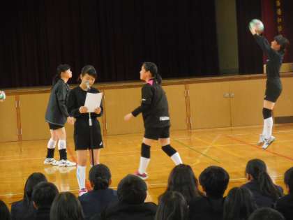 8番手はバレー部です、普段の基礎練習を実演しながら丁寧に紹介しました。さすが3年生はパス一つとっても上手でした。