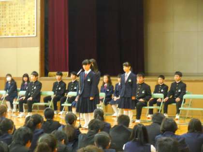 5月2日(月)の1限目、前期生徒会選挙の立会演説会と投票がありました。今回の選挙では、3年生が4人、2年生が2人、1年生が1人立候補しました。立会演説会では、さすが生徒会に立候補しただけあって、全員が堂々とした演説をしてくれました。聴く側の生徒の態度も非常に良く、すばらしい立会演説会でした。
