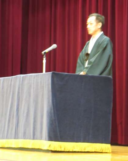 生徒たちも体操服で臨み、長唄の一説に合わせて足さばきを手ほどきしていただきました。少し難しかったようですが、最後に稲生さんが見本の踊りを見せてくださいました。
