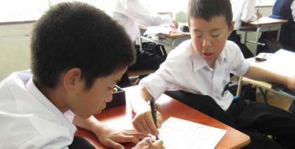 静かに集中することが大切ですが、小声で少し教えている人もいます。