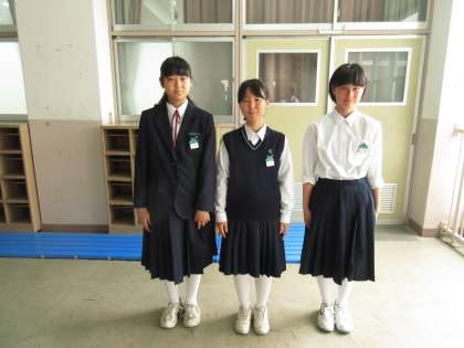 次は女子のお手本です。半袖のシャツでも構いませんので、選んで正しく着こなしてください。
