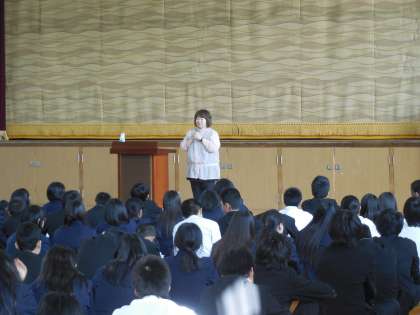 11月6日(水)午後から体育館で、学校元気アップ講演会「受けよう 子どもの気持ち 伝えよう アイメッセージ」がありました。講師として日本メンタルヘルス協会 心理カウンセラーの丸山弥生さんをお招きし、約1時間の講演です。
