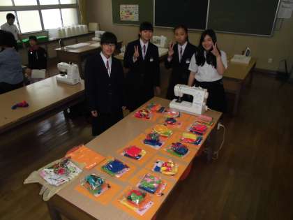 みんなで少しずつ作成してきた千羽鶴と、お土産の”アクリルたわし”がついに完成しました!とっても鮮やかでおもわず見とれてしまう完成度。テストの後も残ってくれたボランティアのみなさん、本当にありがとうございました。民家の方々もきっと喜んでくれますよね♪