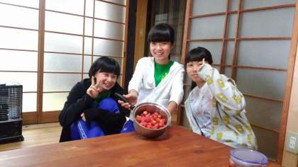 14班の生徒達は、イチゴをごちそうしてくれて、昼食は広島焼を食べるそうです。