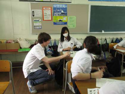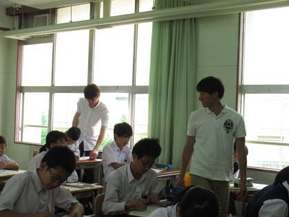 5月26日(木)の4限の2年1組の英語の授業です。木曜日はC−netのジャックさんとのT・T授業です。細かく個別に声かけしながらの授業風景です。