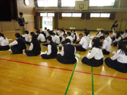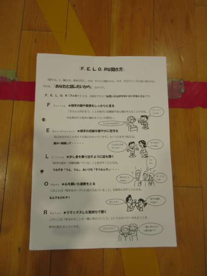 5月30日(月)の1限は体育館で「FELORな聞き方」のプリントを使いながら指導しました。それから事業所ごとに分かれて体験の目的(決意)などを考えました。