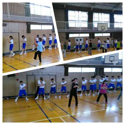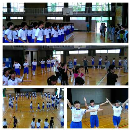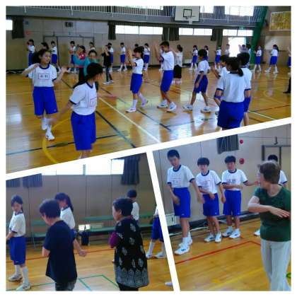 6月6日(月)3限、地域の女性会の方々にお越しいただき、体育館で「盆踊り」授業を実施しました。