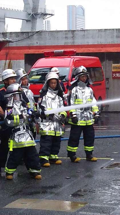 水上消防署です。ロープの扱いや放水の作業です。かっこいいです。