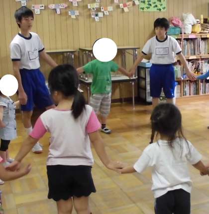 築港保育園です。こどもたちに囲まれて幸せそうです。