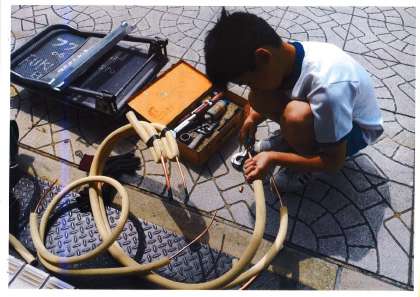 フクオカ電気は1日目都島までテレビの修理にいきました。すごく素敵なお宅だったようです。2日目は配線の練習です。この事業所も1人の体験です。興味のある作業をさせてもらったようです。