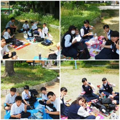 今日は天候が心配されましたが、午後にはすっかり晴れて近くの生國魂神社横の公園で昼食をとって帰ってきました。