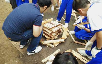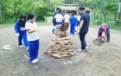 1年 一泊移住 キャンプファイヤー準備3