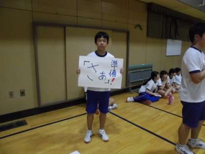 劣勢を吹き飛ばそうと2組も応援頑張ります。応援団長の”応援の舞”、副団長のプラカード、女子は選手の名前が書かれたゼッケンを振って応援します。その効果もあってか、後半は2組が怒涛の反撃を見せました!