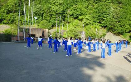 只今、ラジオ体操中です。