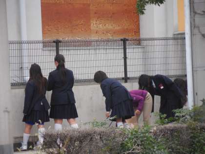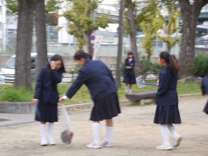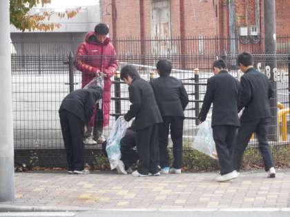 11月19日(火)午後、築港タイムの時間を使って1年生は校外清掃をしました。どの学年も年一回、地域のボランティア清掃活動をしています。