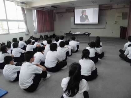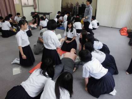 7月1日(金)、期末テスト終了後に、各部活動の代表生徒を対象に、救命救急講習会を水上消防署の方に開いていただきました。救命救急の講習ビデオをみんなで観た後、胸骨圧迫とAEDの使用法のレクチャーを受けました。みんなとても真剣に取り組んでくれたので、水上消防署の方からもお褒めの言葉をいただきました。
