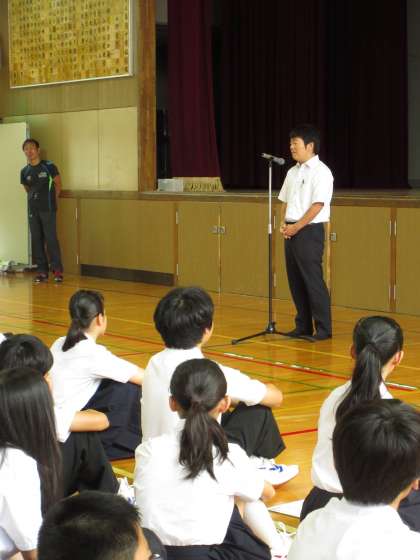 堺先生の方からチャイム着席運動についてのお話がありました。チャイム着席の時だけでなく普段の生活の時にも気にしてほしい。でも呼びかけた時だけでも「やろう。」という気持ちは大切な事だというお話でした。