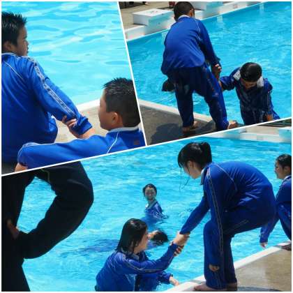 昨日の雨が嘘のように天気に恵まれ、絶好のプール日和!!太陽が照りつける中いざ訓練が始まると、全員が真剣に説明に耳を傾け、実技に取り組めていたように感じます。