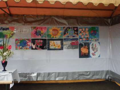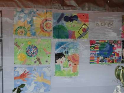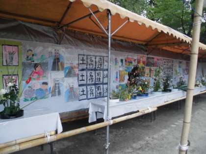 住吉神社の祭礼に伴って、近隣の小中学校の図工・美術の作品が展示されています。築港中学校の16人の作品も展示されています。