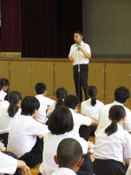 始業式の校長先生のお話は「夏休み水難事故などに合わないように。」「有名なイチローも絶え間ぬ努力した。」「計画性が大切。」「1日1日大切に過ごそう。」というお話がありました。