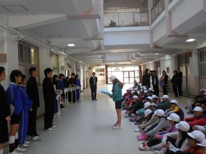 築港、港晴、両小学6年生70名が築港中学校の11の部活動に分かれて体験しました。