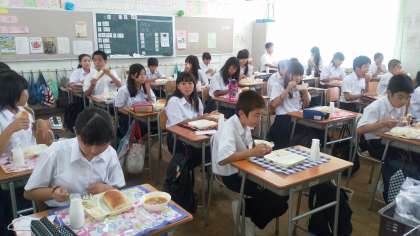懐かしい給食。去年の給食を思い出しながら美味しそうに食べています。