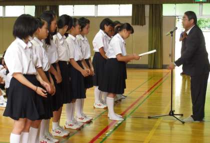 前日の日曜日に八幡屋グランドで港区青少年指導員協議会のソフトボールとキックベースボールの大会が行われました。見事にキックベースボールもソフトボールも3位に入賞しました。キックベースの表彰が行われました。チームは女子も男子も2,3年生の混合チームでした。最後に校長先生から「エジソンは奇跡的な発明に至るまであきらめなかった。今日は大阪880万人の訓練の日です。リオのパラリンピックの開幕です。」というお話がありました。今日の11時の訓練で大災害が起きたらどう行動するかを考えるきっけかにしてほしいですね。
