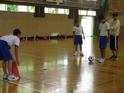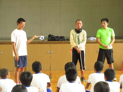 日本ブラインドサッカー協会の池田さんと村上さんに来ていただいて、指導していただきました。
