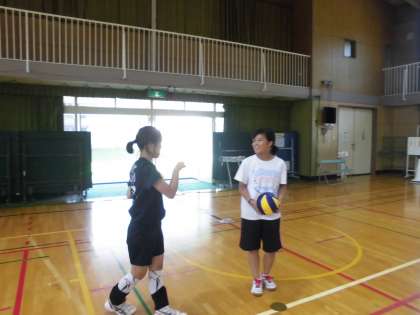 バレー部です、先輩たちがとても丁寧に指導していました。小学生も安心して体験していました。