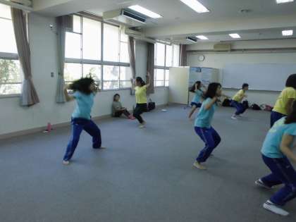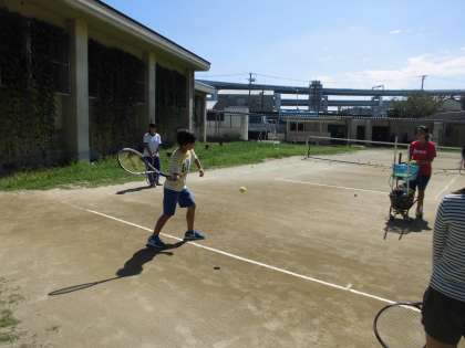 ダンス部と硬式テニス部です。それぞれ中学生のお手本を真似しながら体験をしました。上手くできましたか?