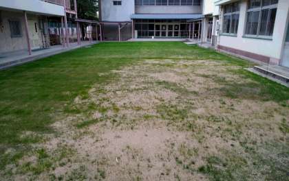 本日、日当たりの少ないところには、夏を過ぎても元気に生えていられるように、暑さに強い芝の種をもう一度蒔きました。