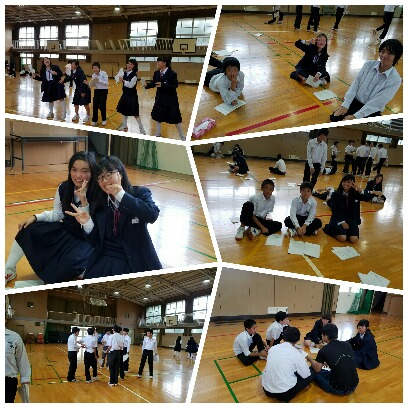10月14日(金)の6限に2年生は体育館の立ち稽古に早くも取り組みました。まだ、脚本は持ったままですが、舞台での出入りを一通りやってみました。そのあとグループに分かれて個別練習です。
