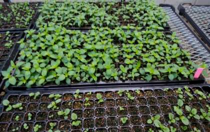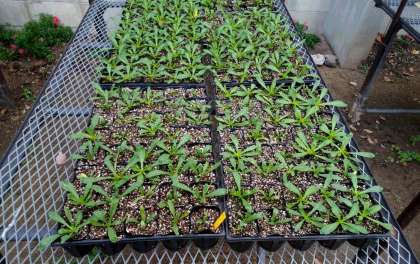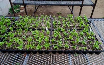 学校元気アップボランティアのみなさんが9月に蒔いてくださった、秋まきの種が芽を出して、大きくなってきました。少し大きなポットに移植されて育っています。