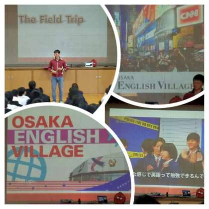 これは、今年度の校長戦略予算で計画した取り組みです。「イングリッシュビレッジ」は、昨年2015年11月19日に開業したエキスポシティにある日本初の体験型英語教育施設で、ネイティブスピーカーの方々と実践的な英語コミュニケーションを体験できる23ものアトラクションを体験できる施設です。