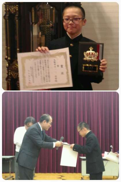 結果は、参加者61名中、最優秀賞が1人、優秀賞が2人、優良賞が3人という枠のなか、見事築港中学校の1年生の小池くんが優良賞をいただきました。