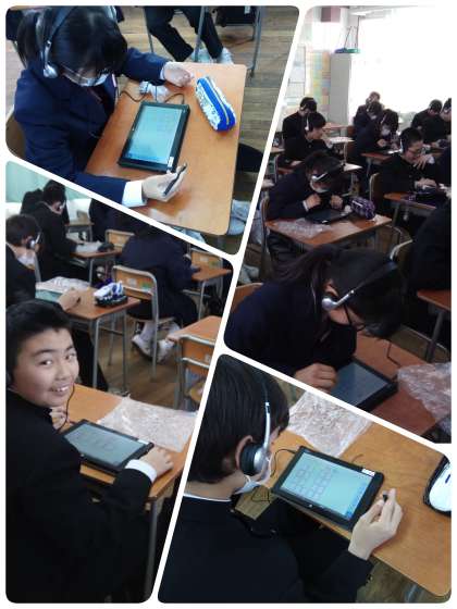2月1日(水)6限目に百人一首大会の個人練習をタブレットを使って行いました。実戦形式とは少し異なりますが、ひとりひとりが集中して取り組んでいました。百人一首大会が楽しみですね。