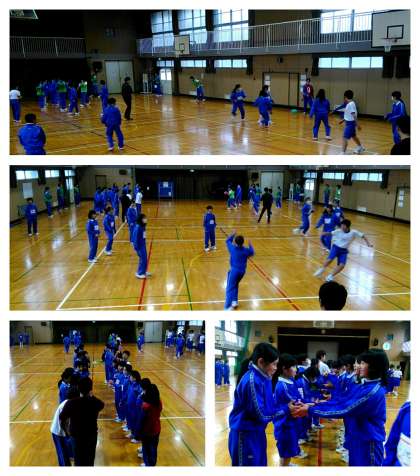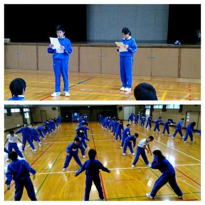 百人一首大会と同じく、学級委員長の司会、体育委員の準備運動(ラジオ体操第1)という生徒の手による進行で開始しました。