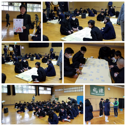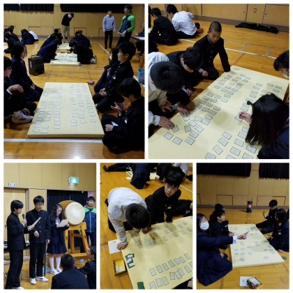 結果はクラス優勝は1組の581枚、2組も惜敗でした。班別は1位が1組H班、2位が2組O班、3位は2組N班でした。全員積極的に参加した百人一首大会でした。