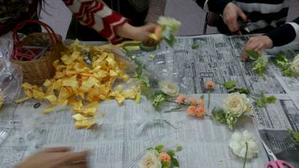 2月1日(土)9時30分から3年生保護者を中心にコサージュ作りをしました。