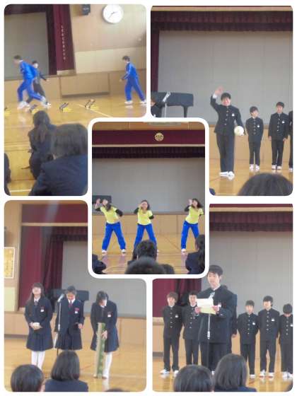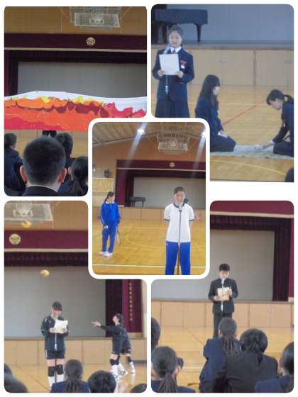 4月12日(水)の6限目、体育館で部活動紹介がありました。2・3年生の先輩方が新入生のみなさんに向けて、笑いあり、演奏あり、とても楽しく紹介してくれました。本当にありがとうございます。明日からは部活動体験が始まります、いろんな部活を体験して、ぜひ3年間続けられるクラブを見つけてほしいと思います。