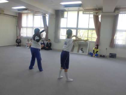 ダンス部です。今日の新入生はみんな昨日も来てくれた経験者なので、習ったダンスの発表会をしました。とても上手な新入生のダンスに先輩方もびっくり!入部が楽しみですね。