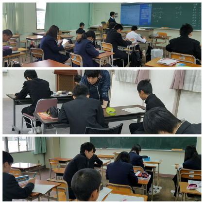 3年生の数学の3分割授業です。α、β、γのクラスに分かれて丁寧な少人数授業を行っています。γ授業ではタブレットを活用して生徒の興味を引き出しています。