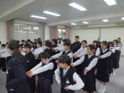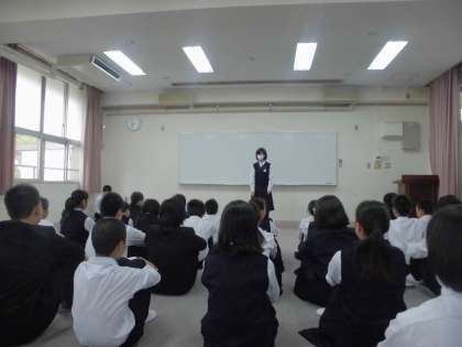 1年生は、毎週水曜日に朝の学年集会があります。今日も8時25分の予鈴で集会が始められるくらい、早い登校をしてくれました。素晴らしいです。長峰先生から『中間テストの準備』についてのお話、庄司先生からは『テスト前学習会』の誘い、委員長からは今月の学年目標の発表がありました。今月は『友達の良いところを見つけ合おう!』です。素敵な目標ですね。