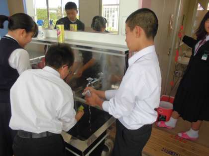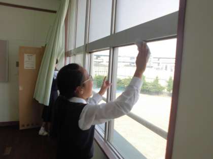 毎日の清掃活動の様子です。入学当初から思っていましたが、1年生はとても熱心。与えられた指示以上の掃除をしてくれます。ご家庭や小学校での指導の賜物だなあと、日々感心しています。